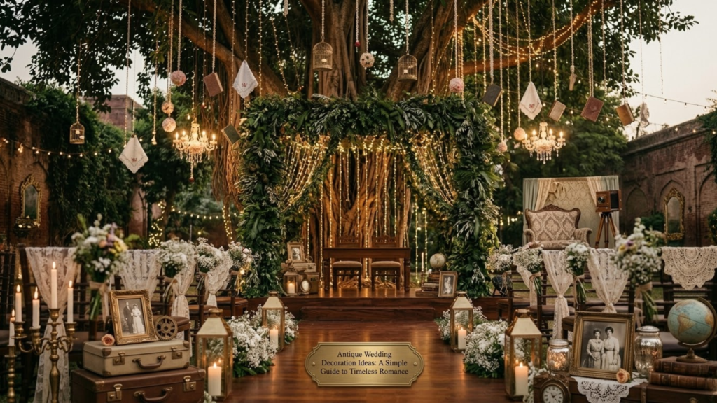 Antique Wedding Decoration Ideas create a warm, romantic, and timeless atmosphere that many couples love. These decorations use soft colors, vintage objects, and elegant details to design a wedding that feels both meaningful and personal. Instead of modern and flashy décor, antique weddings focus on charm, nostalgia, and classic beauty.