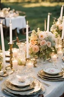 Lace runners, old books, and vintage frames help create layers of texture and interest. Couples sometimes include personal items such as family photos or heirloom pieces to make the décor more meaningful.