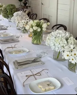 Adding name cards or small floral arrangements enhances the overall look.